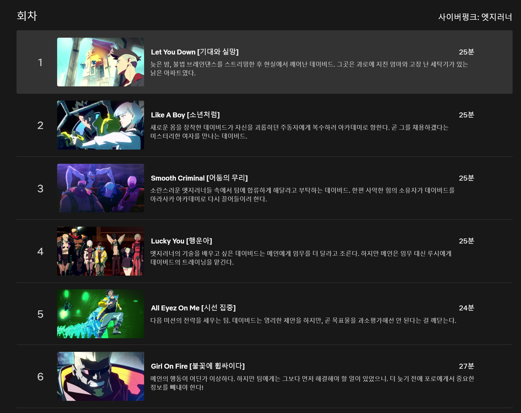 1️⃣ 사이버펑크: 엣지러너 (Cyberpunk: Edgerunners)