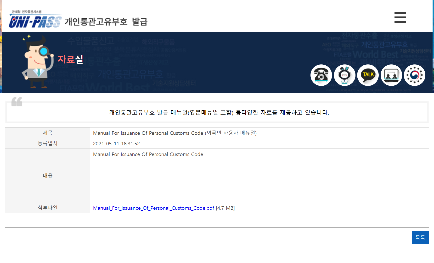 - 로그인 후 조회 : 로그인 후 '개인통관고유부호 조회' 메뉴를 선택합니다.