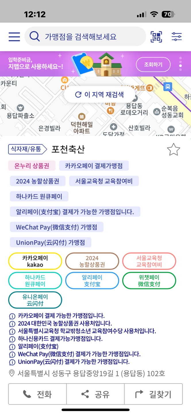 - 원하시는 지도로 가시고 상단에 지역 재검색 누르시면 사용처가 표시됩니다.