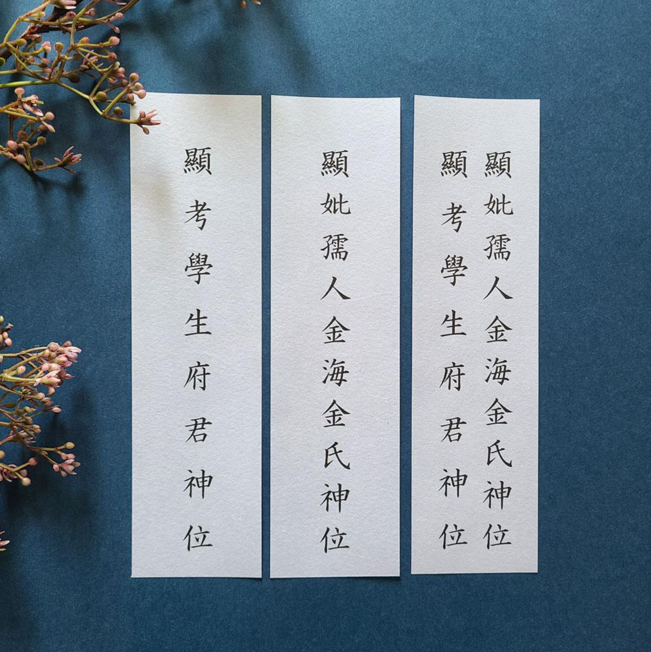 - 두 번째 줄: 고인의 성명을 적습니다. 예를 들어, '學生府君'은 학생이라는 관직을 가진 분을 의미합니다.