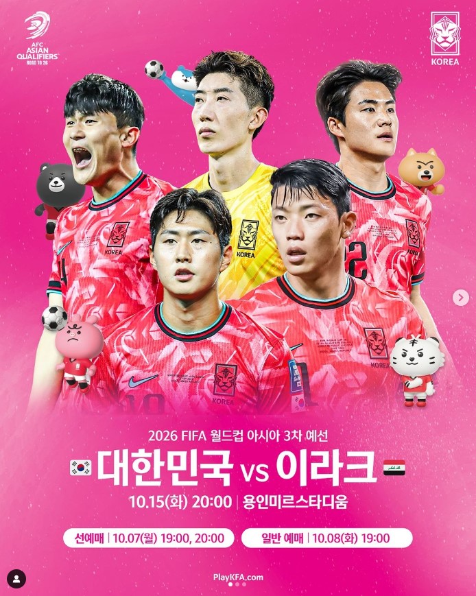 2024년 10월 15일: 대한민국 vs 이라크 (20:00) - 티켓 예매하러 가기