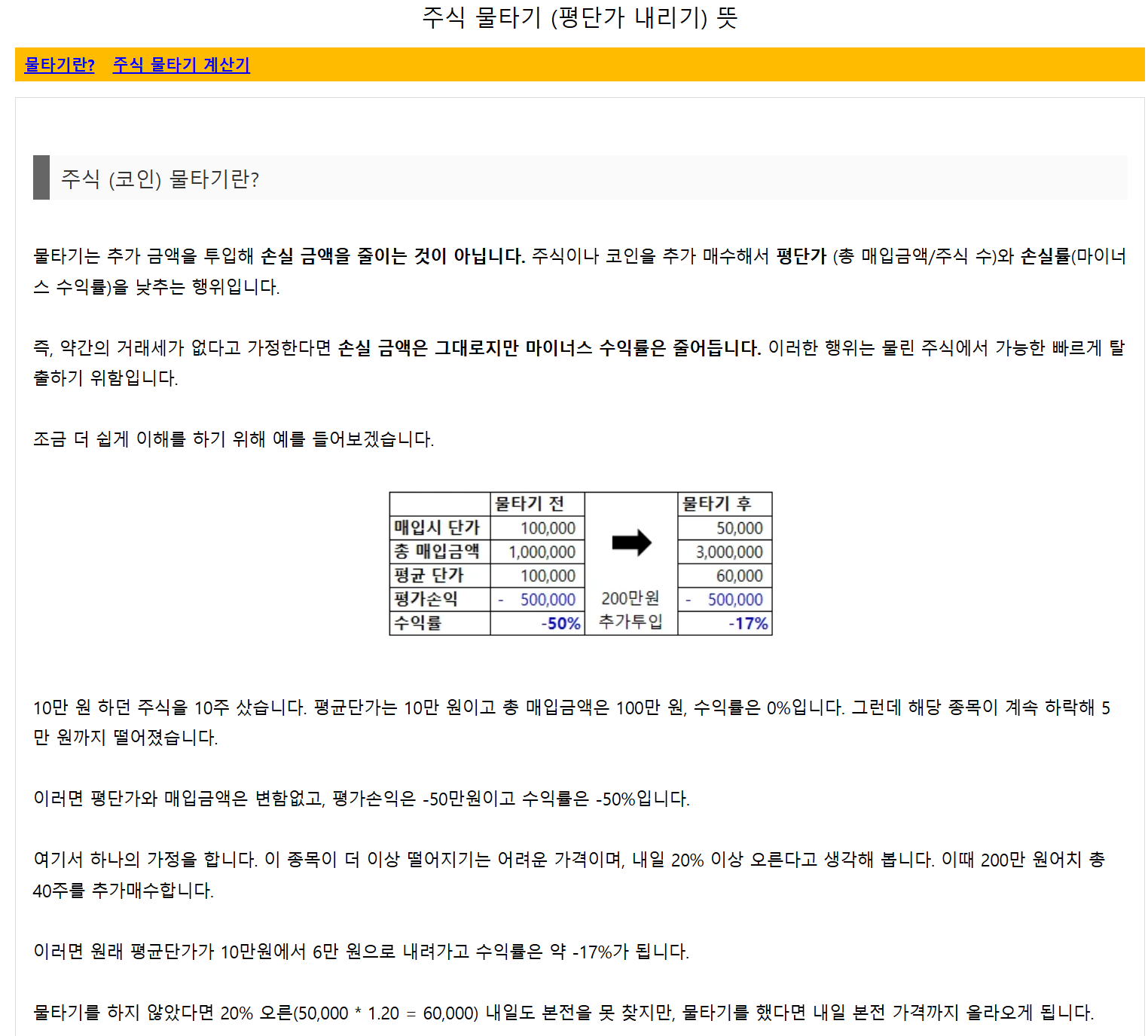 - 계산기 활용: 물타기 계산기를 통해 평균 단가와 손익분기점을 정확히 계산합니다.