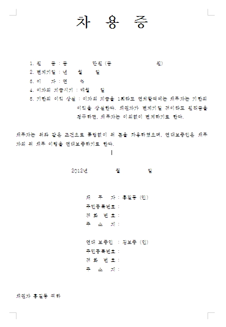 차용증 양식 무료 다운로드