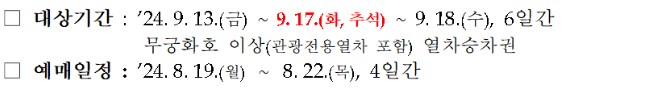 추석 기차표 예매일, 예매방법, 할인혜택, 예매꿀팁