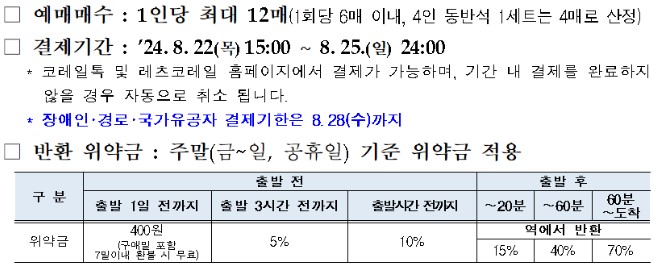 코레일 멤버십 활용 : 코레일 멤버십에 가입하면, 포인트 적립뿐만 아니라 예매 시 추가 혜택을 받을 수 있습니다. 또한, 다양한 이벤트 정보도 정기적으로 받아볼 수 있어 유용하게 활용할 수 있습니다.