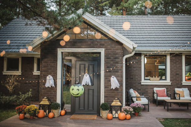 할로윈을 맞이하여 다양한 소품과 장식이 필요합니다. 대표적으로 호박, 유령, 해골, 거미줄 등이 있습니다. 특히 호박은 할로윈의 상징으로, '잭 오 랜턴'이라고 불리는 호박 조각이 유명합니다. 호박을 파내고 얼굴을 조각하여 불을 켜면, 어두운 밤에 더욱 빛나는 장식이 됩니다. 또한, 집 안팎을 유령, 해골, 거미줄 등으로 장식하면 할로윈 분위기를 한층 더할 수 있습니다.